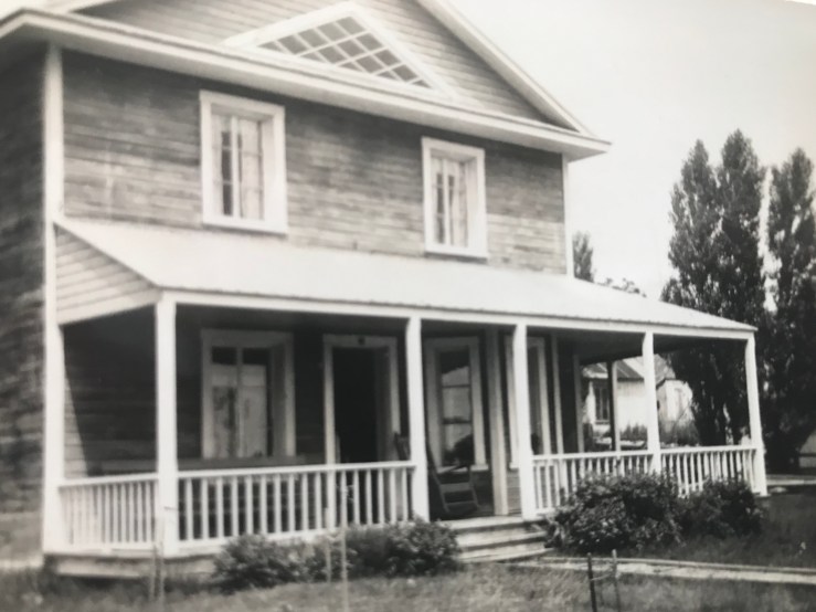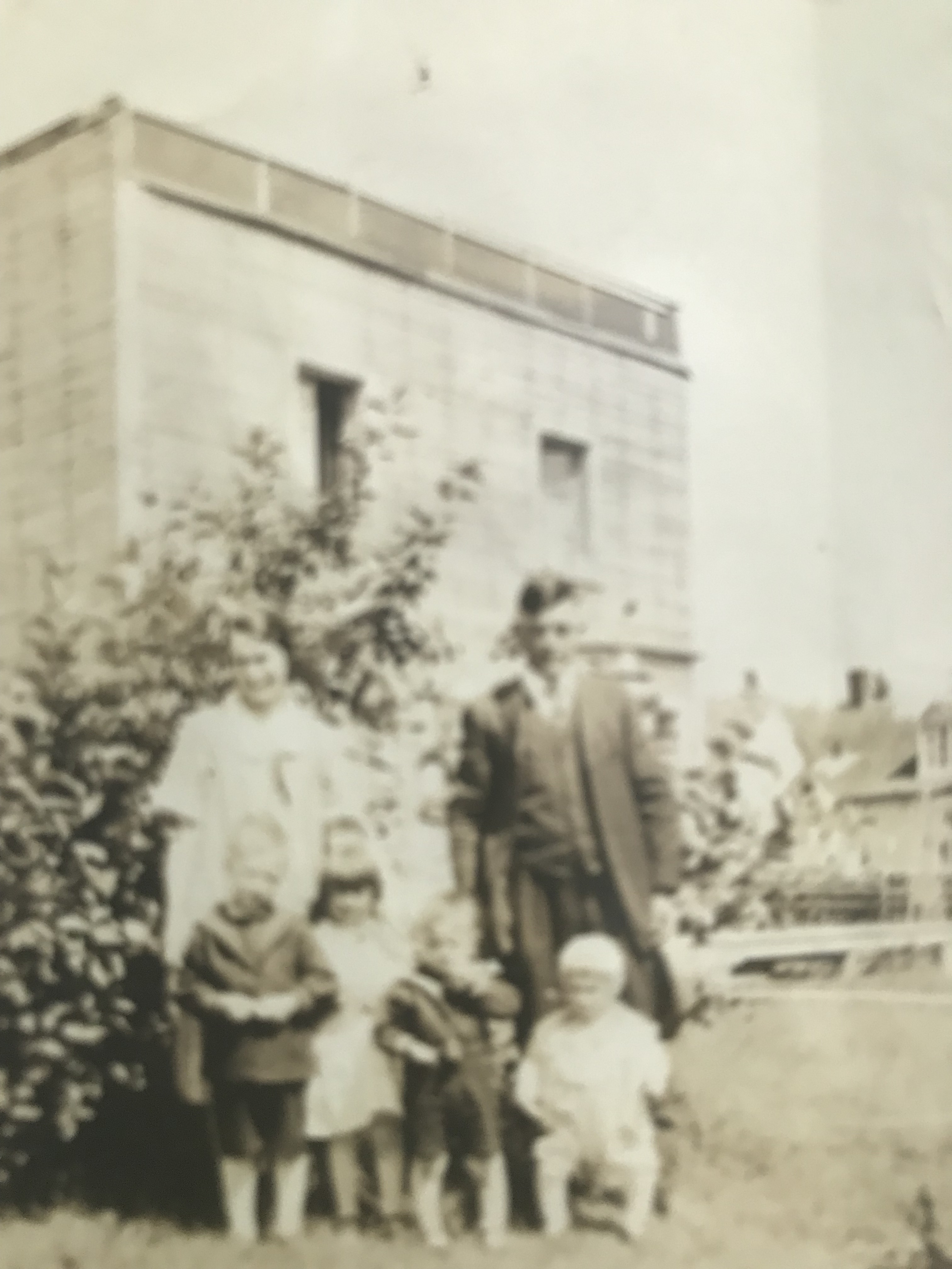 La photo familiale présente nos grands-parents avec leurs enfants Jean-Jude, Lucille, Maurice et Pierre. Julienne n’est pas encore née. Le toit de la maison de même que celui de la galerie ne sont pas encore terminés. La maison voisine existe toujours et abrite aujourd’hui le restaurant Pick-Up Grillé.